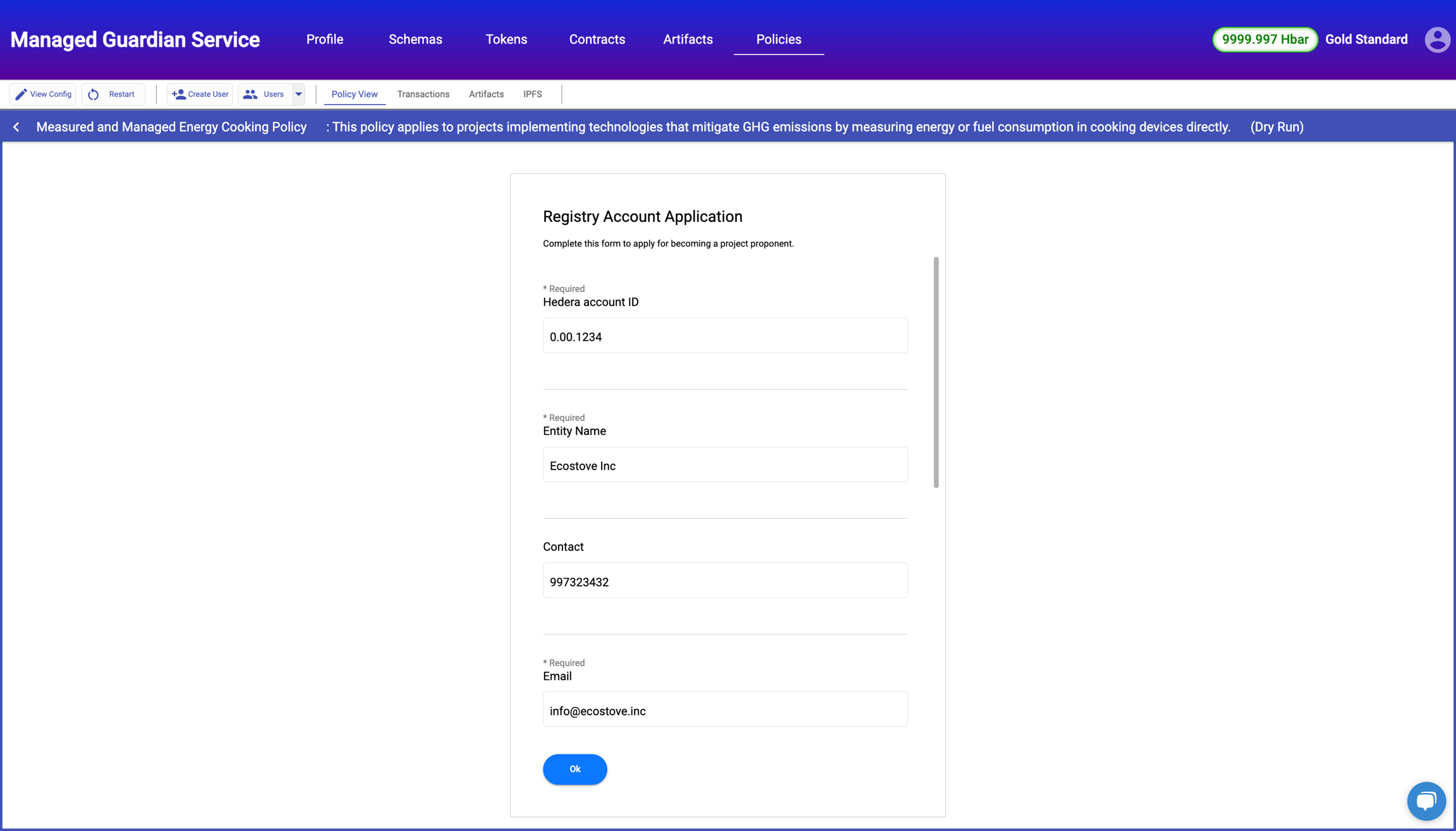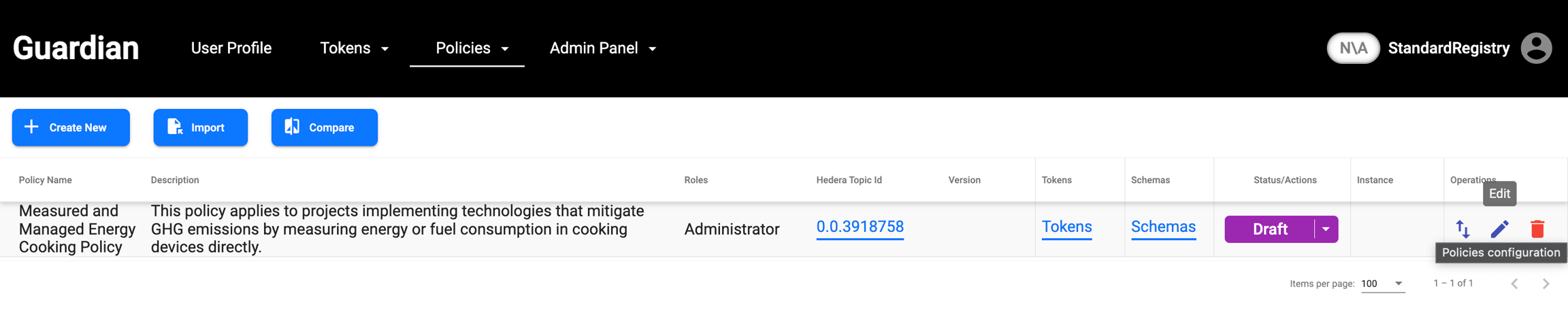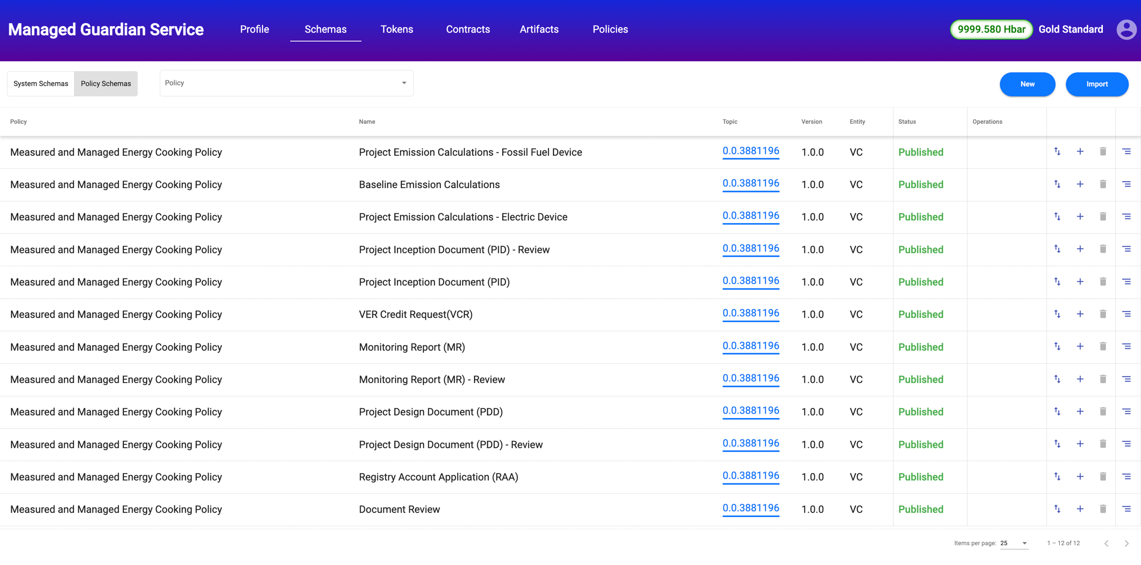 This policy is published to Hedera network and can either be imported via Github(.policy file) or IPFS timestamp.