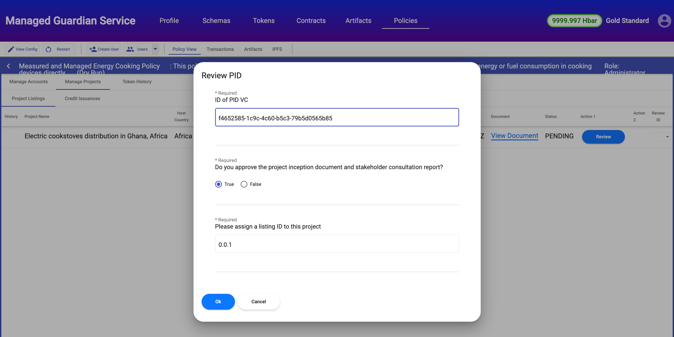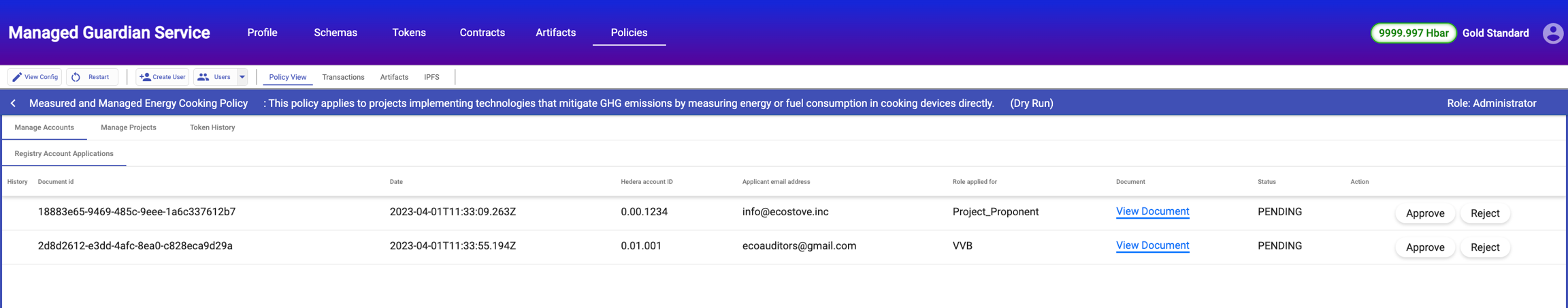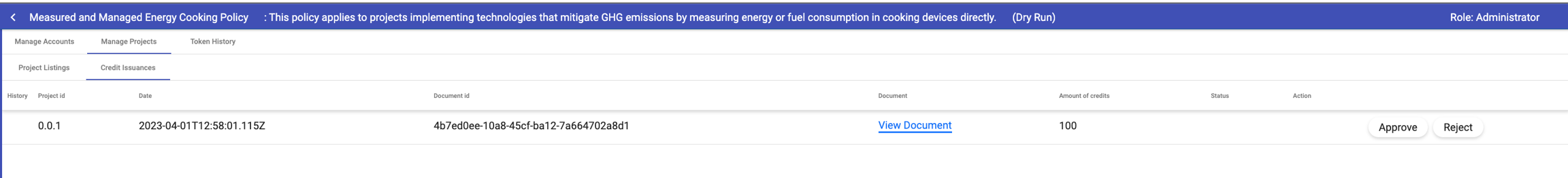 Registry can review project inception documents allowing the listing of projects on standard website and trigger project execution on ground.