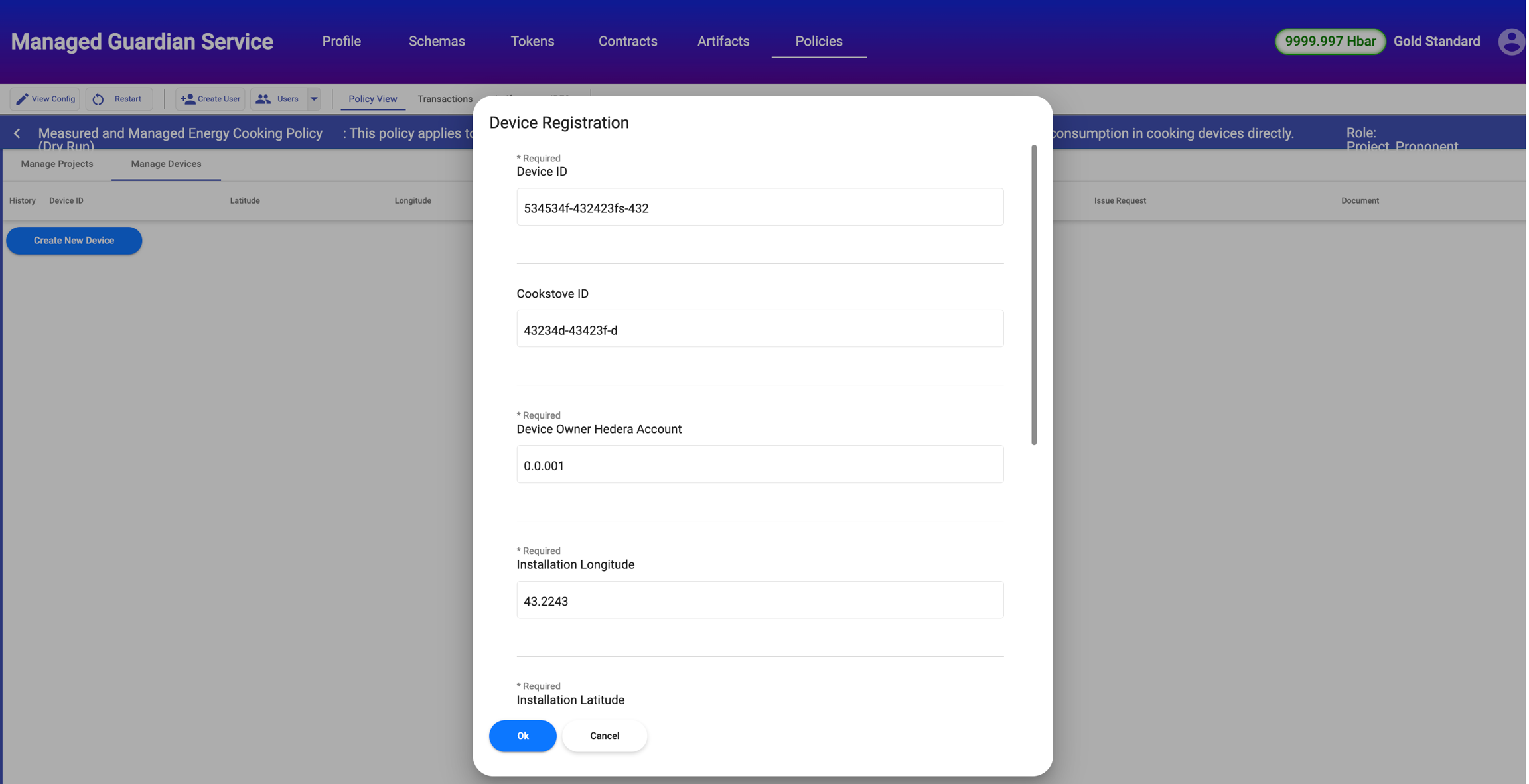 Project proponent can register a measuring device associated a given cookstove