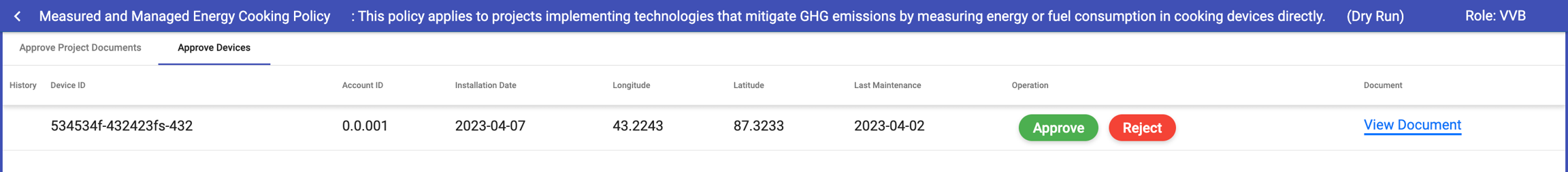 Device can be approved/rejected by the VVB