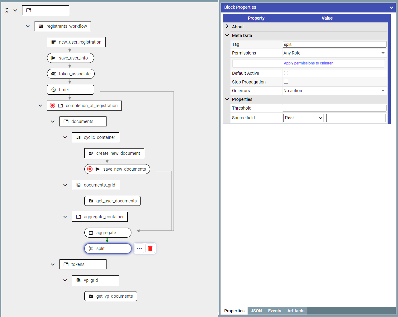 1.1 Add '***splitBlock***' immediately after the '***aggregateDocumentBlock***'