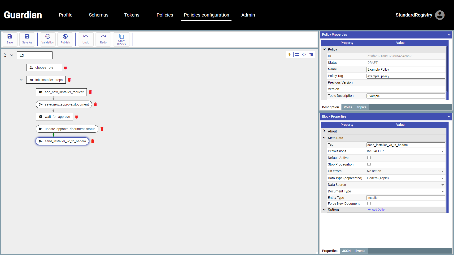 Note that the data type must be “Hedera” since the document is to be sent as a verifiable credential for permanent storage to Hedera.