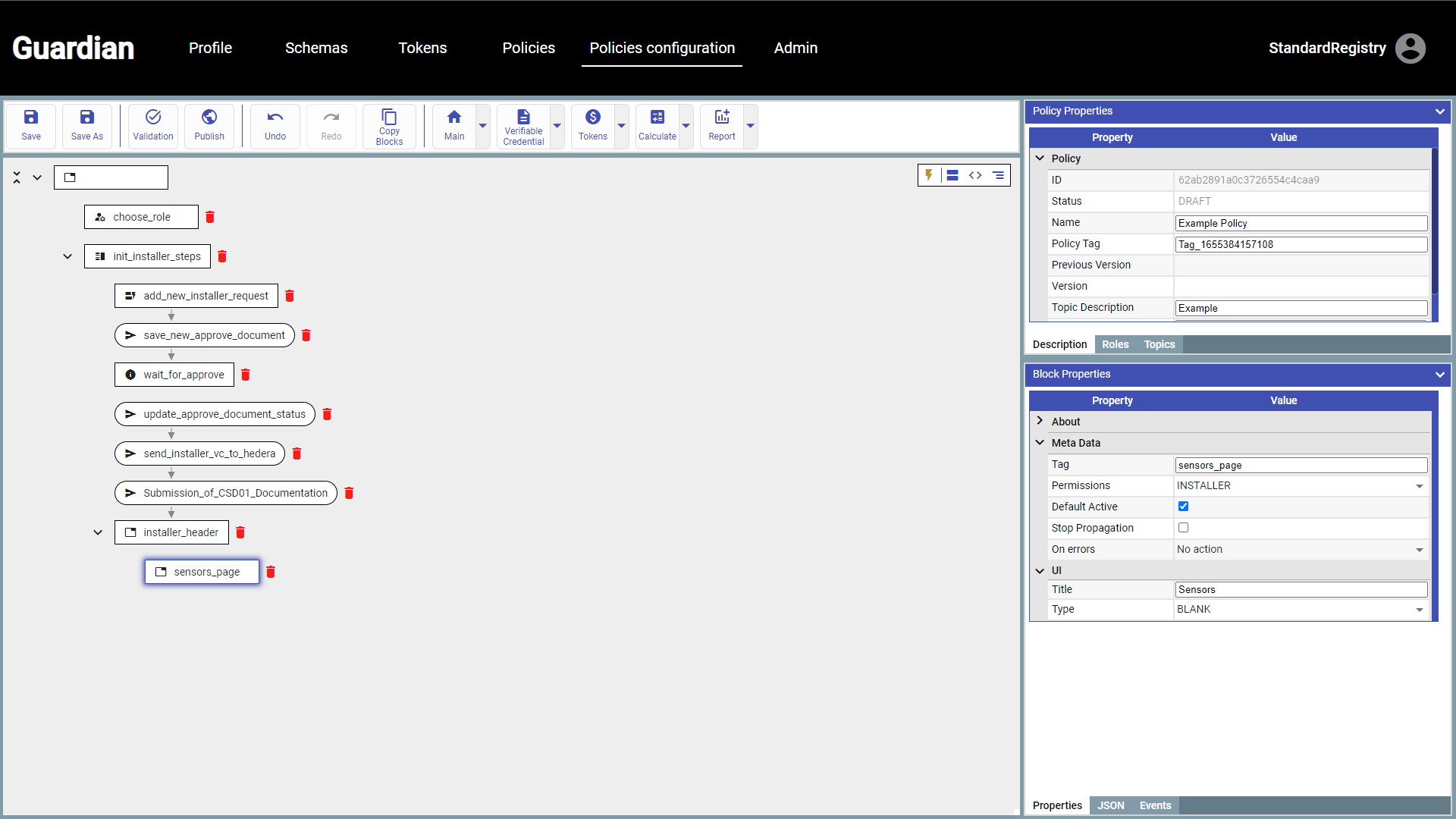 This block is to set up sensors by the Installer and, therefore the page of the UI should be BLANK to be able to add data.
