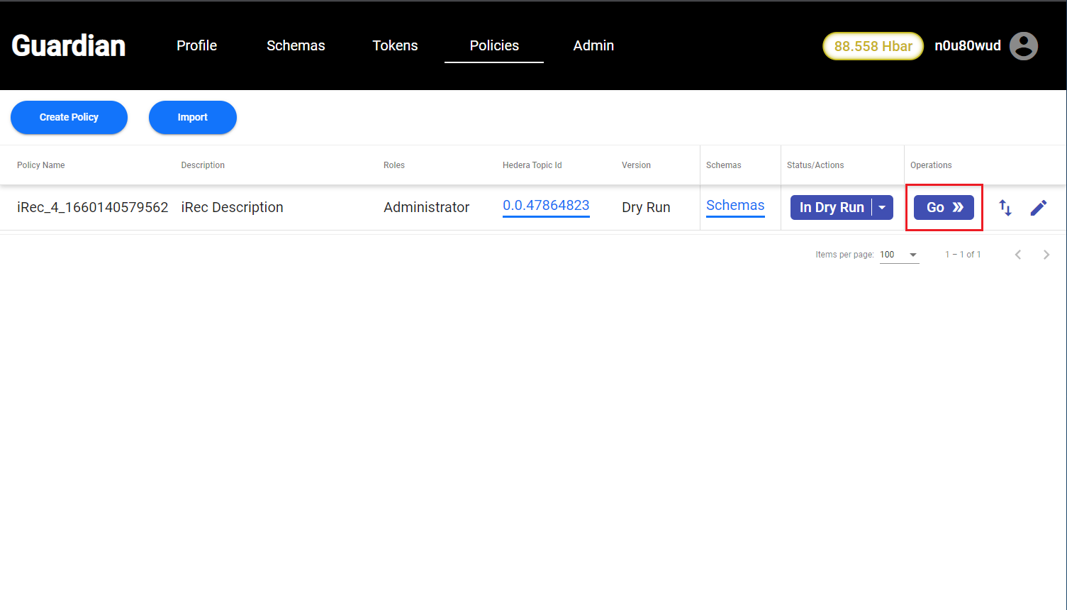 To open the Policy in Dry Run mode, click on the **Go** button in the Operation column.