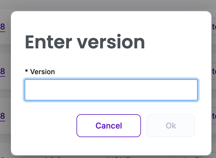After clicking on Publish, you will be prompted to enter the version. After entering the Version and pressing the submit button, the status will change to Published.